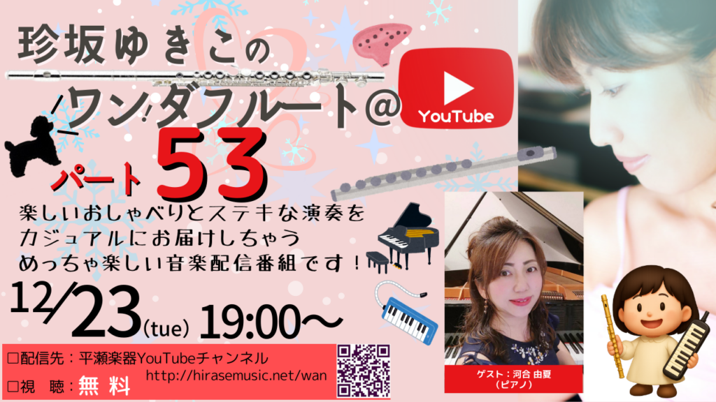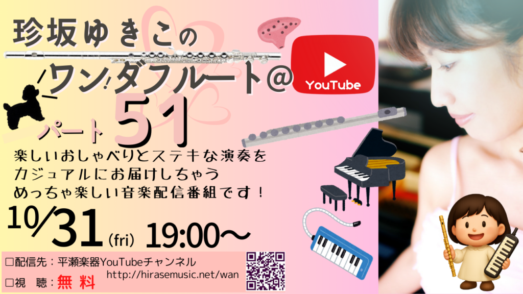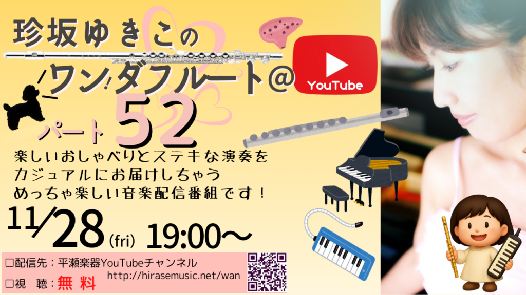 フルート・鍵盤ハーモニカ・オカリナ・ピアノ・ダジャレをあやつる珍坂ゆきこさんによるとっても楽しい音楽配信番組