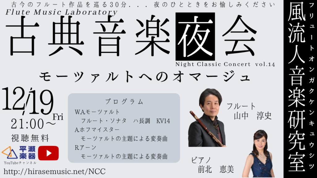 古今のフルート作品を紹介する30分の本格クラシック番組
