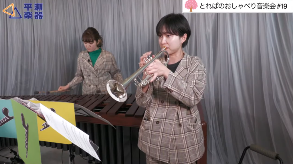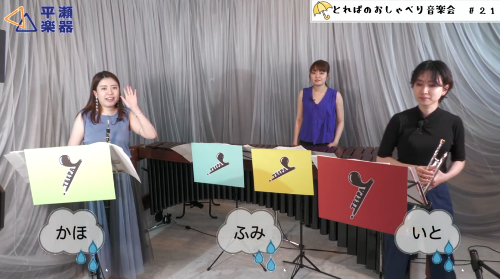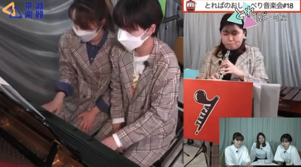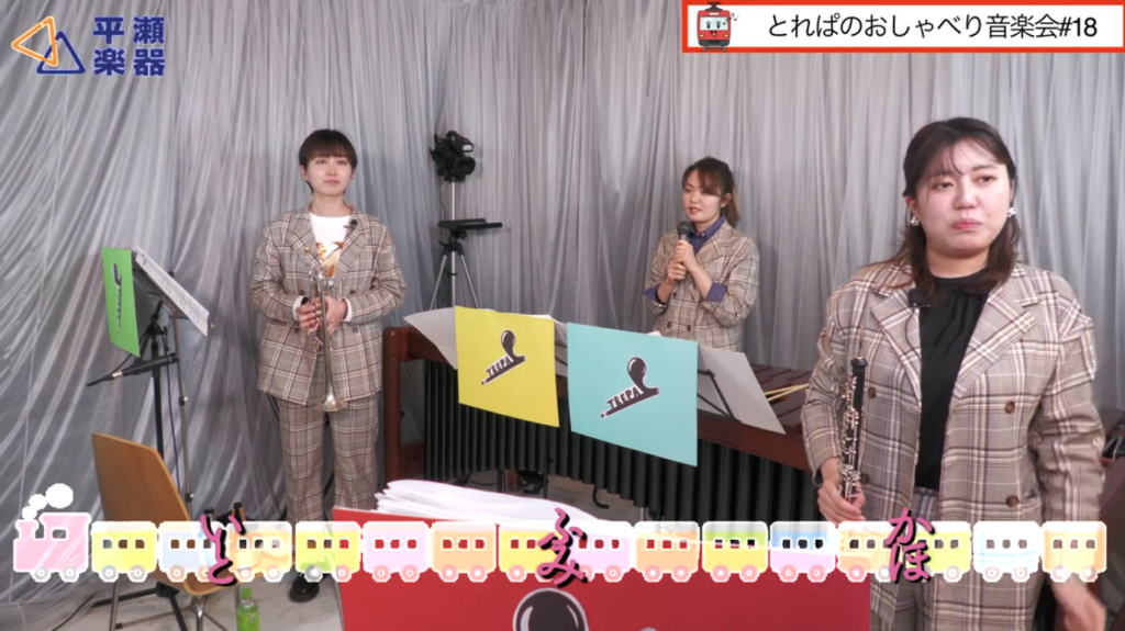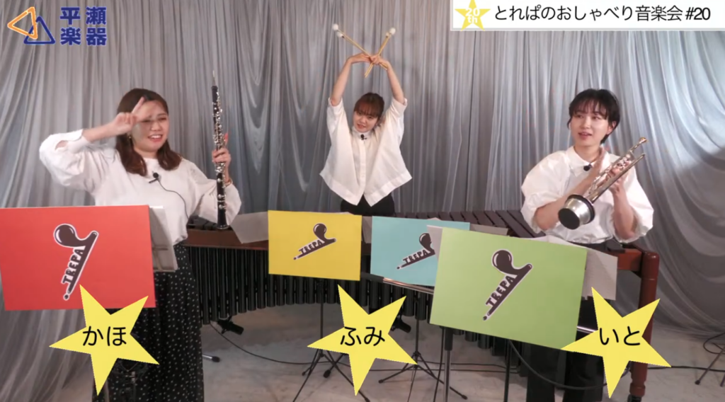かほ(オーボエ)、いと(トランペット)、ふみ(マリンバ)