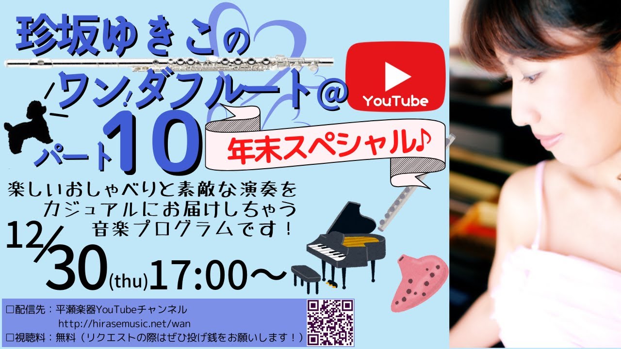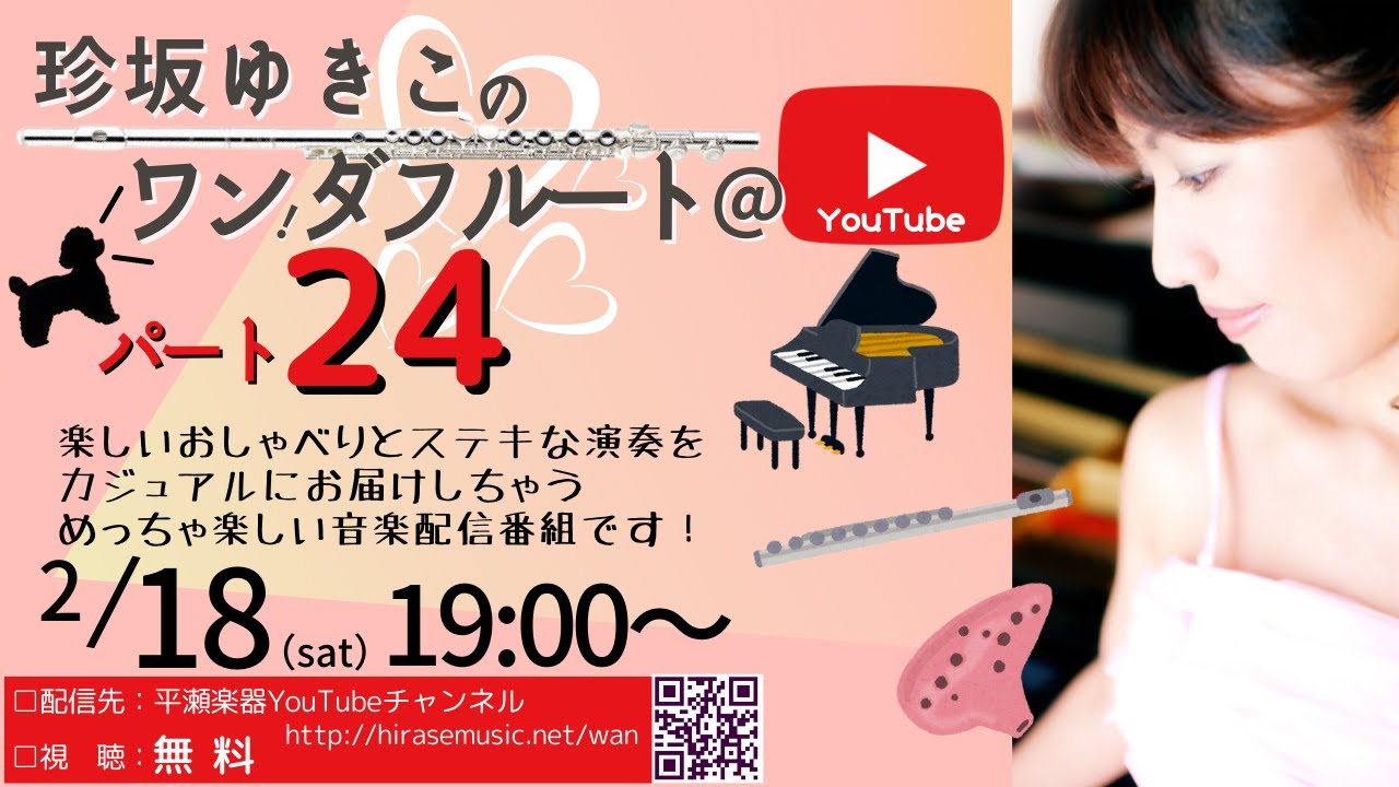 フルート・鍵盤ハーモニカ・オカリナ・ピアノ・ダジャレをあやつる珍坂ゆきこさんによるとっても楽しい音楽配信番組