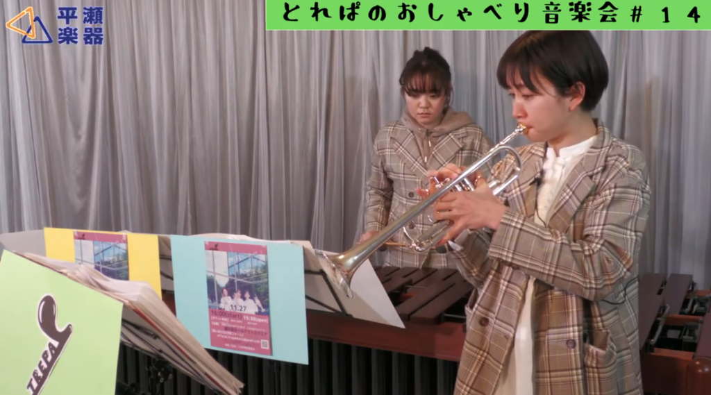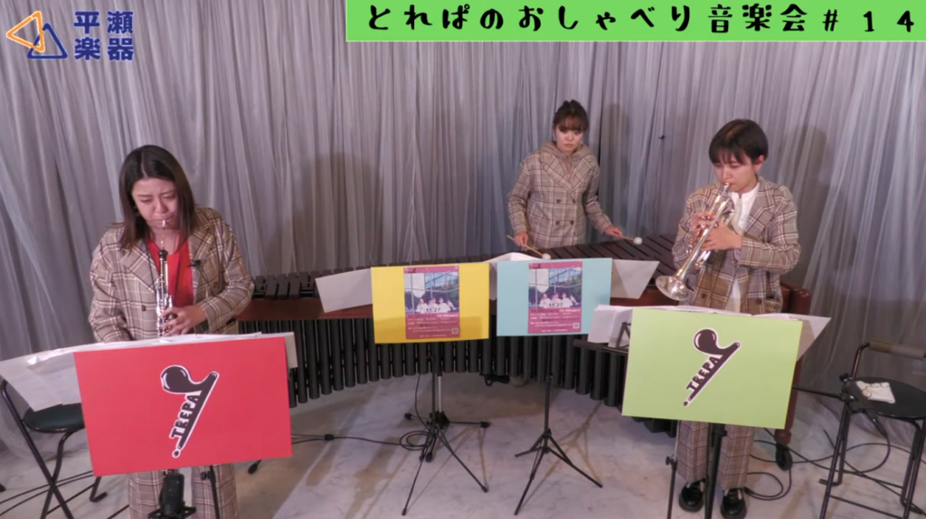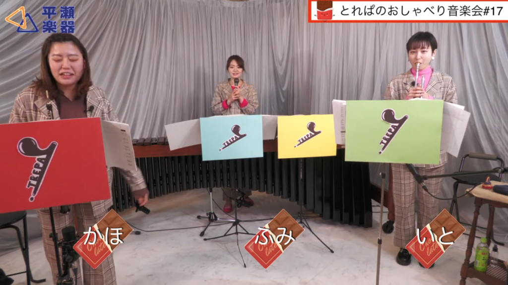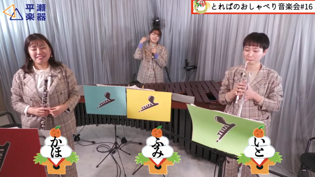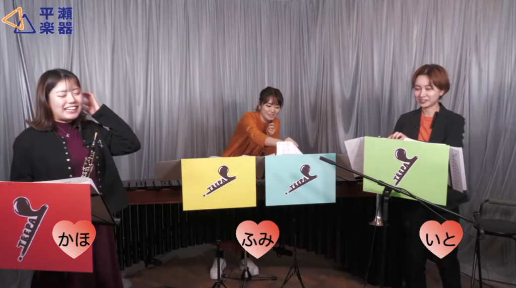 かほ(オーボエ)、いと(トランペット)、ふみ(マリンバ)