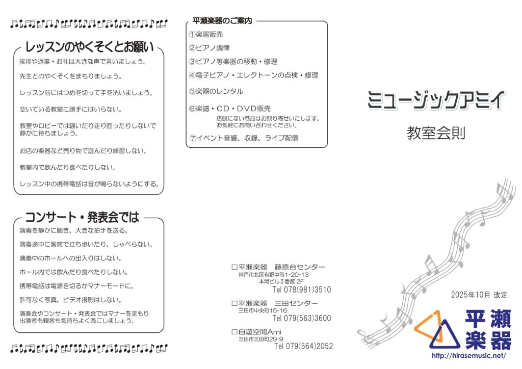 Copyright© 平瀬楽器|三田市・神戸北の音楽教室・楽器販売・中古ピアノ・電子ピアノ・エレクトーン・ギター・教育楽器・調律・イベント音響・配信・収録 All Rights Reserved.