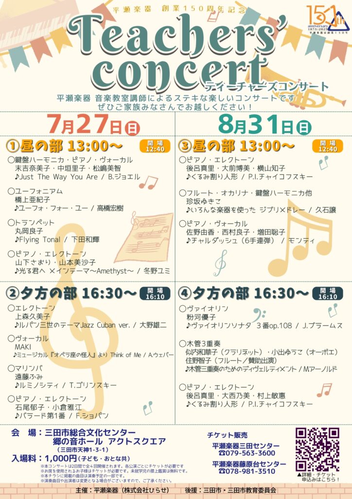 7月27日(土)に開催予定のティーチャーズコンサート(16:30開演回)のチケットが完売となりました!